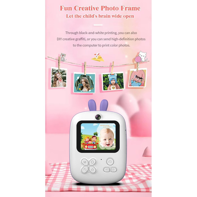 با تصویربرداری 2 مگاپیکسلی 1080P HD، میتوانید با وضوح بیشتری عکس بگیرید. باتری داخلی 1800 میلی آمپری با ظرفیت بالا، پس از شارژ کامل، می تواند بیش از 2000 عکس مداوم بگیرد و حداکثر 1.5الی 2.5 ساعت فیلمبرداری را پشتیبانی کند. دوربین دیجیتال چاپ فوری مناسب برای کودکان دارای چاپ سیاه و سفید است