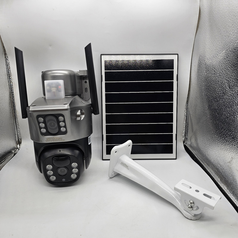 دوربین 4G شارک مدل TP15-4G این دوربین دارای باتری داخلی 8000 میلی آمپر ساعتی بوده و این دوربین بدون نیاز به برق و فقط با پنل خورشیدی که داخل جعبه موجود است میتوانید آنرا در روز مبتوانبا از دوربین استفاده کنید و علاوه بر استفاده در روز شارژ شده و در شب از باتری آن استفاده نمایید این دوربین دارای ۲ لنز بوده و یک لنز این دوربین ثابت است و لنز دیگر متحرک است و در جهت های بالا و پایین و چپ و راست میتوانید آنرا کنترل کنید تفاون این دوربین با بقیه دوربین ها این است که این دوربین لنز ثابتش نیز در جهت های بالا و پایین قابل تنظیم است برای استفاده از این دوربین کافیست در داخل آن یک عدد سیم کارت (همراه اول-ایرانسل )قرار دهید (برون نیاز به هیچگونه مودم) تا از هر جای دنیا صدا و تصویر این دوربین را روی گوشی خود داشته باشید و آنرا کنترل کنید و بچرخانید کیفیت تصویر این دوربین 1080 FULL HD بوده و دارای دید در شب وارم لایت بوده که درشب علاوه بر دید در شب رنگی محیط بیشتری را پوشش میدهد هر لنز این دوربین دارای دید در شب مجزا بوده که شب تصویر رنگی نیز به شما میدهد و این دوربین در داخل بسته بندی دارای یک عدد آداپتور 2 آمپر ضد آب بوده که شما میتوانید آنرا در زیر باران نیز نصب کنید و فقط نیاز است این دوربین را به برق متصل نمایید و با استفاده از اپلیکیشن V380 PRO از آن استفاده نمایید و شما میتوانید در داخل این دوربین کارت حافظه قرار دهید و تصاویر را دائما ضبط نمایید و تصاویر ضبط شده را روی موبایل مشاهده نمایید . دارای قابلیت آژیر که در صورت مشاهده حرکت شروع به آژیر کشیدن میکند دقت کنید این محصول دارای سنسور حرکت مجزا از دوربین میباشد و تفاوت آن با مابقی دوربین های بازار این است که درصد خطای سنسور را به صفر میرساند و کاربرد دزدگیر نیز این دوربین دارد برای استفاده این دوربین فقط نیاز به سیم کارت دارید بدون نیاز به مودم .برنامه v380 جزو اپلیکیشنهایی است که با اینترنت ایران به خوبی کار میکند پنل خورشیدی این دوربین از خود دوربین مجزا بوده و دارای پایه فلزی مخصوص میباشد و شما میتوانید دوربین و پنل خورشیدی را با فاصله از هم نصب نمایید تا بهترین زاویه خورشید را داشته باشید