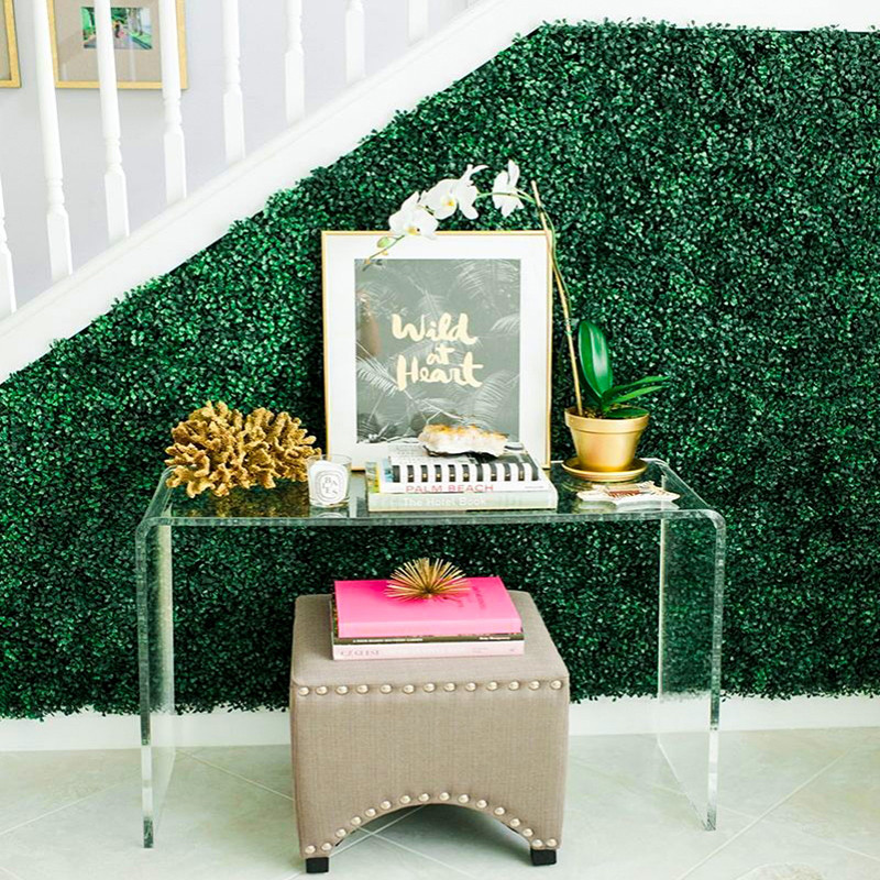 این محصول به دلیل برخورداری از واحد های سازنده به شکل برگ و ساقه مرکبات به ویژه درخت پرتقال، با این عنوان نامگذاری شده. مدل برگ پرتقالی با داشتن 32 عدد واحد برگ درشت، نمای زیبای شاخ و برگ درخت پرتقال را همانندسازی می کند. مدل برگ پرتقالی با رنگ سبز روشن و بهاره ارائه می شود. ظاهر خاص و بسیار متفاوت این محصول در مقایسه با دیگر مدل ها، دیوار سبز را از یکنواختی درآورده و نمایی پویا به آن می بخشد. این محصول، ساختاری ناهموار دارد؛ بلندی و کوتاهی پوشش سبز در مدل برگ پرتقالی، برای تزئین پس زمینه دیوارها بسیار مناسب است. جای دِهی و نصب انواع گل مصنوعی در پنل برگ پرتقالی، پوشش گیاهی در مناطق معتدل و مرطوب را شبیه سازی نموده و رضایت افراد با سلایق مختلف را جلب خواهد کرد. نصب پنل برگ پرتقالی در کنار دیگر مدل های گل ریز، جلوه ای بسیار زیبا را پدید می آورد که طرح های گوناگونی را می توان با آن اجرا نمود. قیمت این محصول در مقایسه با زیبایی و کیفیت عالی آن، بسیار مقرون به صرفه بوده و باعث برتری آن در مقابل محصولات موجود در بازار شده است. این مدل نیز همچون دیگر محصولات دیوار سبز مصنوعی از مواد اولیه پلیمر صنایع پتروشیمی کشور تولید شده که ثبات رنگ و کیفیت محصول را در مقابل نور خورشید تضمین می نماید. پنل برگ پرتقالی به شکل مربع و با ابعاد 25×25 سانتی متر و با رنگ سبز عرضه می شود که از بسیاری جهات، تفاوت های آشکاری با دیگر محصولات دیوار سبز مصنوعی دارد. شبکه بستر نگهدارنده در این مدل، از 8 ردیف طولی و 8 ردیف عرضی تشکیل شده که تقاطع آنها، مجموعاً 64 جایگاه قرارگیری گل را فراهم می کند؛ همچنین یک سازه پیرامونی و یک سازه ضربدری در سطح کلی پنل، باعث تقویت آن می شود. ضخامت (کلُفتی) بستر پشتیبان در این محصول 2 میلی متر و پهنای رشته های آن 5 میلی متر است که شبکه ای منعطف و مستحکم را تشکیل داده و در حقیقت، پایه و ساختار نگهدارنده گل ها محسوب می شود. ساختار متقاطع و قائمِ رشته ها در بستر پشتیبان این پنل ها باعث پدید آمدن چشمی (خانه) های چهارگوش شده که اضلاعی با طول داخلی 2.7 سانتی متر دارد. در تقاطع خطوط بستر پشتیبان، یک زائده سوزنی شکل به طول 13 میلی متر و قطر کمتر از 2 میلی متر تعبیه شده که پین یا خار نامیده می شود و در واقع پایه و محل اتصال واحد (گل) ها هستند.