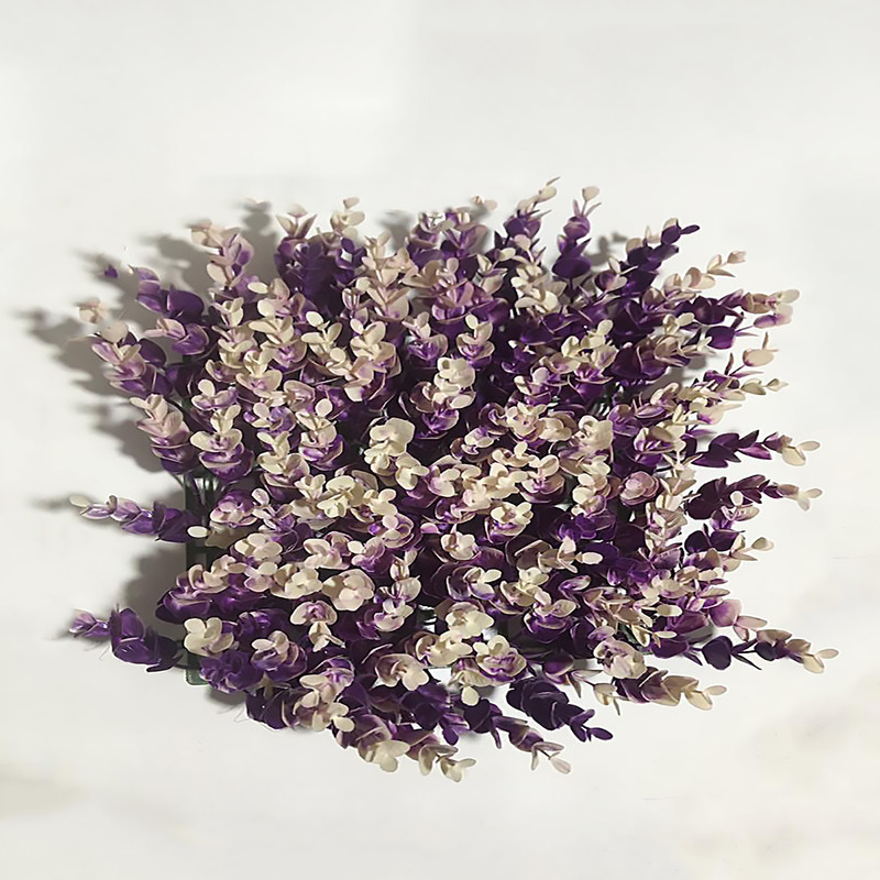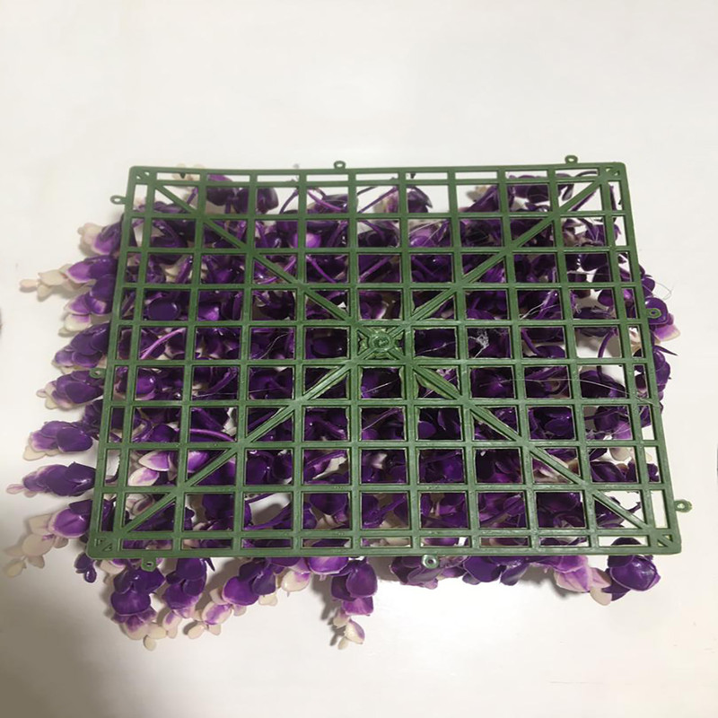این محصول همان گونه که از نامش پیداست، ساقه و برگ هایی مشابه گیاه شمشاد دارد. تنوع ساختار برگ های این محصول باعث پدیدار گشتن یک توده بنفش زیبا می شود که حس زنده بودن و نشاط را به محیط منتقل می نماید. برای انجام تزئینات تکمیلی نیز می توان گیاهان مصنوعی با اندازه های بزرگ تر و رنگ های موجود در گیاهان طبیعی را بر روی آن نصب نمود. کنار هم قرار گرفتن رنگ بنفش و سفید موجب پدید آمدن دیوار سبز مصنوعی بسیار زیبایی می شود که نظر مثبت افراد با سلایق مختلف را جلب می نماید. جای دهی و نصب انواع دسته برگ و گل مصنوعی در میان مدل شمشادی، جلوه دوست داشتنیِ طبیعت مناطق معتدل و مرطوب را شبیه سازی می نماید. ارتفاع تاج پوشش مدل شمشادی 10 تا 11 سانتی متر و قطر هر واحد تشکیل دهنده (گل) آن 5 سانتی متر است که حجم پوششی بسیار انبوه و متراکمی را پدید می آورد. نظافت گیاهان مصنوعی بسیار آسان است و هیچ صدمه ای به دیوار سبز وارد نمی کند. اصولاً به علت قرارگیری عمودی دیوار سبز مصنوعی، گرد و غبار اندکی بر روی آن انباشته می شود. خاک و غبار نشَسته بر روی دیوار سبز را می توانیم با فشار باد دستگاه های دمَنده و گردگیرهای پَر یا نخی پاک کنیم به طوری که ظاهر دیوار سبز مثل روز اول تمیز و زیبا شود. در صورت نصب صحیح و اتصال استوار دیوار سبز مصنوعی با بستر خود و البته عدم آسیب به محیط اطراف، می توانیم با آب و با مواد شوینده خانگی به شستشوی آن بپردازیم. این پنل به شکل مربع و با ابعاد 23.5×23.5 سانتیمتر عرضه می شود که با احتساب زوائد دایره ای شکل اتصال توسط میخ به دیوار، معادل 25×25 سانتی متر معرفی می شود. در صورت نصب صحیح و اتصال استوار دیوار سبز مصنوعی با بستر خود و البته عدم آسیب به محیط اطراف، می توانیم با آب و با مواد شوینده خانگی به شستشوی آن بپردازیم.