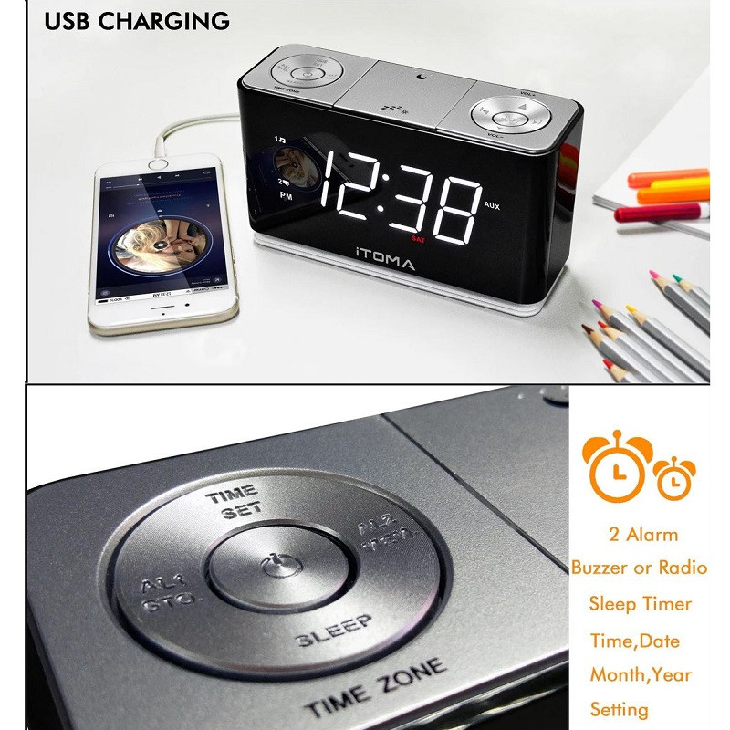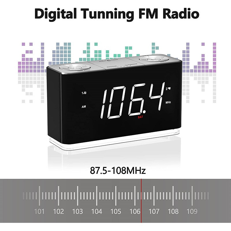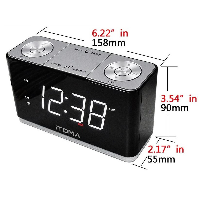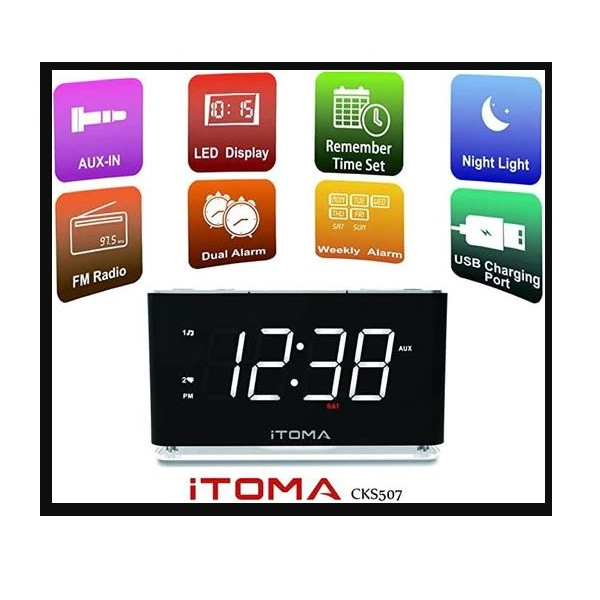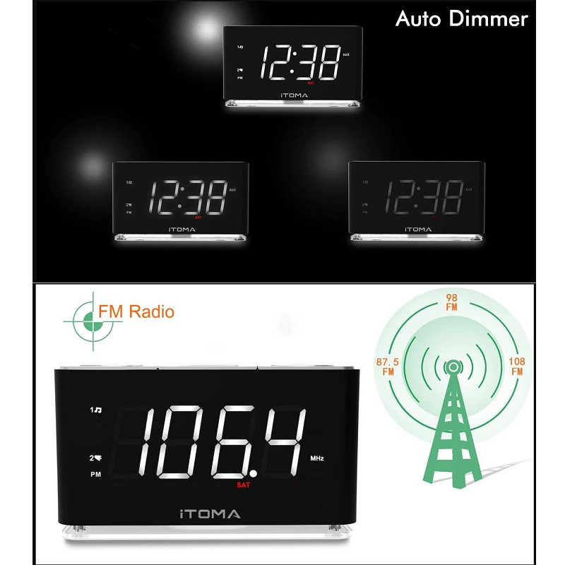 | امکانات و قابلیتها | هفت عملکرد در یک دستگاه : Dual Alarm: دو آلارم مستقل را همزمان تنظیم کنید نور شب --- نور شب با یک لمس زنگ هشدار: زنگ یا رادیو رادیو FM دیجیتال ---رادیو FM تایمر خواب --- تایمر خواب با منابع در حال پخش پورت شارژ USB - دستگاه تلفن همراه شما را شارژ نگه می دارد بلوتوث 5.1 --- با جفت کردن آن با دستگاه بلوتوث خود به موسیقی یا صدای مورد علاقه خود گوش دهید. تنظیم ساده زمان و تاریخ شما به راحتی می توانید منطقه زمانی را با فشار دادن دکمه TIME SET تنظیم کنید تا ساعت چشمک بزند. سپس برای تغییر زمان، دکمههای Tune Up یا Down را فشار دهید. ساعت تابستانی (DST) نصب شده است و CKS507 زمان را به طور خودکار تغییر می دهد. (اگر منطقه شما به ساعت تابستانی نیاز ندارد، می توانید آن را به صورت دستی خاموش کنید.) یک باتری پشتیبان برای صرفه جویی در وقت شما نصب شده است، حتی زمانی که منبع برق AC از بین رفته است. روشنایی خودکار با کنترل کم نور روشنایی صفحه نمایش LED به طور خودکار با شرایط نور فعلی در اتاق تنظیم می شود، زیرا سنسور داخلی وظیفه تشخیص شدت نور محیط را دارد. (در یک اتاق با نور روشن تر، در یک اتاق تاریک تاریک تر) می توانید کمترین روشنایی را از پیش تنظیم کنید.بلوتوث 5.1 : با جفت کردن آن با دستگاه بلوتوث خود به موسیقی یا صدای مورد علاقه خود گوش دهید. دو آلارم مستقل:تنظیم همزمان دو زنگ هشدار مستقل: دو نفر در یک اتاق برنامه بیداری کاملا متفاوتی دارند. همچنین، آلارمهای شما ممکن است برای چندین هدف غیر از بیدار کردن شما در طول روز تنظیم شوند. ساعت زنگ دار دوگانه iTOMA تمام نیازهای شما را بدون نیاز به خرید چندین ساعت زنگ دار برآورده می کند. رادیو FM دیجیتال تنظیم فرکانس FM دیجیتال. حافظه برای حداکثر 10 ایستگاه رادیویی قابل برنامه ریزی. آنتن کابلی خارجی برای دریافت آسان در هر مکانی. چراغ شب ساعت زنگ دار مانند چراغ شب است که برای مطالعه در رختخواب عالی است و به بچه هایی که از تاریکی می ترسند کمک می کند بهتر بخوابند. |