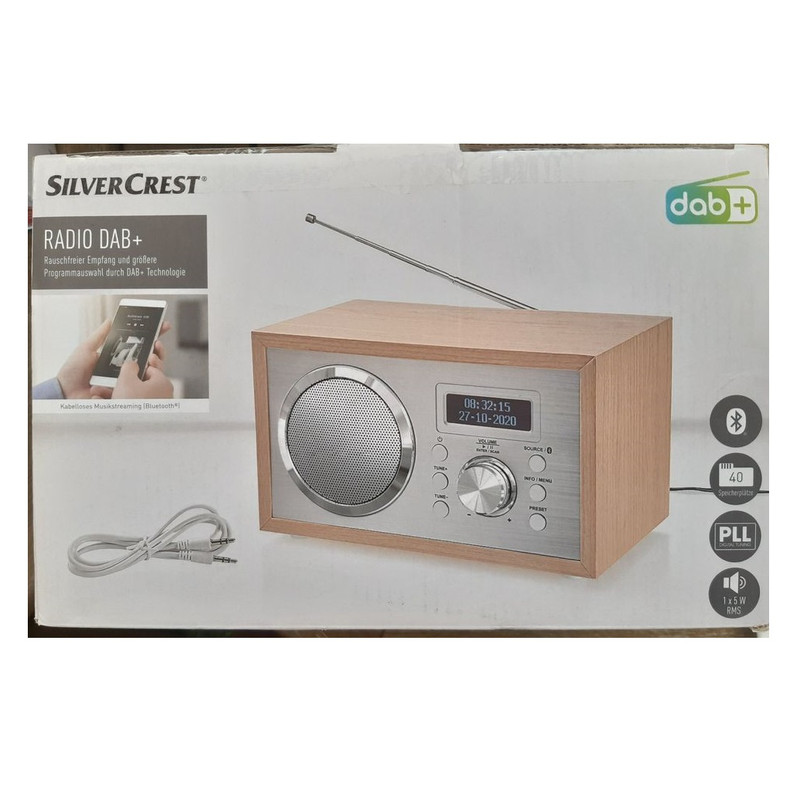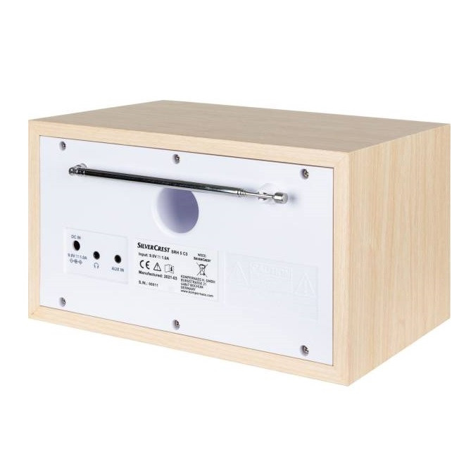Silvercrest SRH 5 C3 از 1 اوت 2022 در فروشگاههای Lidl در دسترس خواهد بود. دو رنگ بدنه سفید و چوب روشن اعلام شده است. این یک رادیو ثابت و سیمی با دریافت رادیو دیجیتال و پخش موسیقی از طریق دستگاه هایی است که از طریق بلوتوث یا ورودی صوتی در پشت دستگاه با استفاده از کابل جک متصل می شوند. بازتولید صدا از طریق هدفون سیمی یا بلندگوی مونو یکپارچه امکان پذیر است. توان پنج وات آن مطمئنا برای ارائه صدا برای مهمانی کافی نیست. رادیو نیز بیشتر برای آشپزخانه یا میز کنار تخت در نظر گرفته شده است. در اینجا قرار داده شده است، با زنگ هشدار قابل تنظیم خود را مفید می کند. یا زنگ هشدار یا برنامه رادیویی به شما یادآوری می کند که اجاق گاز را خاموش کنید یا از خواب بیدار شوید. متأسفانه هدفون بلوتوث قابل اتصال نیست زیرا ماژول بلوتوث فقط برای دریافت طراحی شده است نه انتقال.