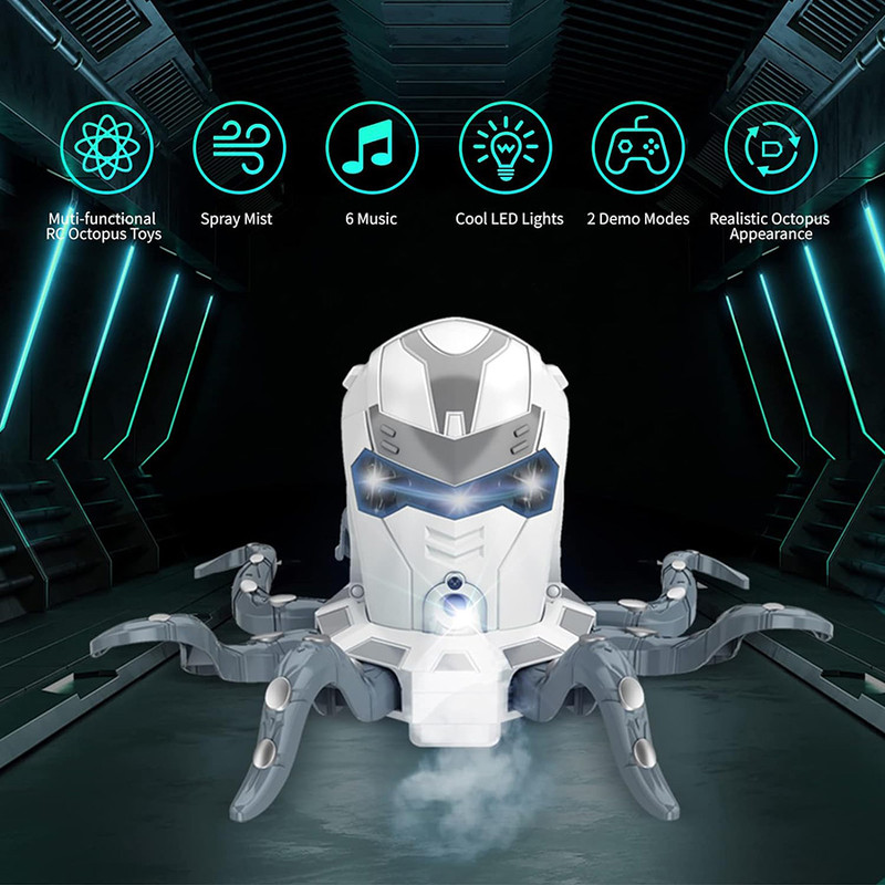 هشت پا کنترلی دودزا مثل یک اختاپوس واقعی در خشکی حرکت میکنه! اسباب بازی اختاپوس کنترلی با طراحی و صورت بامزه ی خودش میتونه دوست خوب کوچولوی شما باشه! هشت پا بامزه را با کابل USB شارژ کنید و آن را بر سطوح صاف قرار دهید تا به صورت جذابی مثل اختاپوس حرکت کند.اختاپوس شارژی کنترلی دودزا یک اسباب بازی بسیار محبوب و دوست داشتنی میباشد.این محصول با ویژگی های جذابی که دارد میتواند بهترین دوست فرزند شما شود.اختاپوس شارژی برای گروه سنی 3 سال به بالا مناسب میباشد.اختاپوس کنرلی دودزا بامزه موزیکال میباشد و چراغ های led جذابی دارد که لذت بازی با این محصول را دوبرابر میکند.