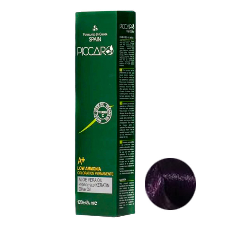 رنگ مو پیکارو حاوی کراتین , روغن کنجد , روغن بادام , روغن زیتون , ویتامین E , C , B , نرم کننده , جوانه گندم , عصاره آلوئه ورا و کراتین هیدرولیز شده می باشد که موجب آبرسانی , درخشندگی و شفافیت مو ها می شود و از خشکی و شکنندگی مو ها جلوگیری می کند. از سایر ویژگی های رنگ مو پیکارو می توان به ماندگاری و دوام طولانی و پوشش یکنواخت سفیدی مو اشاره کرد. رنگ مو پیکارو دارای حداقل میزان آمونیاک است.