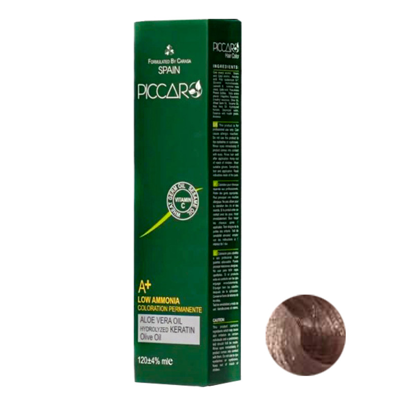 رنگ مو پیکارو حاوی کراتین , روغن کنجد , روغن بادام , روغن زیتون , ویتامین E , C , B , نرم کننده , جوانه گندم , عصاره آلوئه ورا و کراتین هیدرولیز شده می باشد که موجب آبرسانی , درخشندگی و شفافیت مو ها می شود و از خشکی و شکنندگی مو ها جلوگیری می کند. از سایر ویژگی های رنگ مو پیکارو می توان به ماندگاری و دوام طولانی و پوشش یکنواخت سفیدی مو اشاره کرد. رنگ مو پیکارو دارای حداقل میزان آمونیاک است.