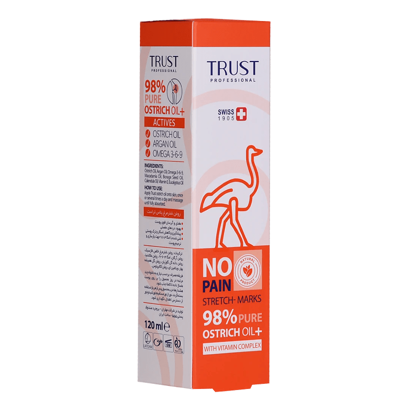 روغن شترمرغ غنی شده تراست برای اولین بار با بهره گیری از فاز سبک روغن شترمرغ بصورت. کاملا خالص (خلوص 98 درصدی) در کنار یک کمپلکس ویتامین در کنار روغن کالاندولا و روغن جوجوبا همراه با کره گیاهی (شی باتر) سبب حفاظت از پوست در برابر شرایط سخت محیطی میگردد.