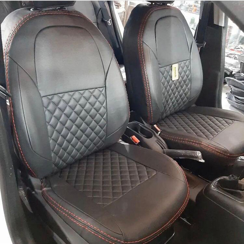 از دلایل استفاده روکش صندلی می توان به حفظ نظافت صندلی فابریک خودرو و تزئین داخلی خودرو به سلیقه مشتریان اشاره کرد استفاده از روکش هایی که متناسب الگوی صندلی نباشد موجب افت ابر های صندلی می گردد. اگر شما نسبت به نظافت و پاکیزگی روکش صندلی های خودرو خود حساس هستید پیشنهاد ما به شما روکش صندلی های چرمی می باشد زیرا مهم ترین مزیت روکش صندلی های چرمی , زیبایی و استحکام ، نظافت و پاکیزگی سریع و راحت آن می باشد این روکش مشکی رنگ میباشد و تنوع رنگی درج شده در ان مربوط به رنگ نخ دوخت ان میباشد