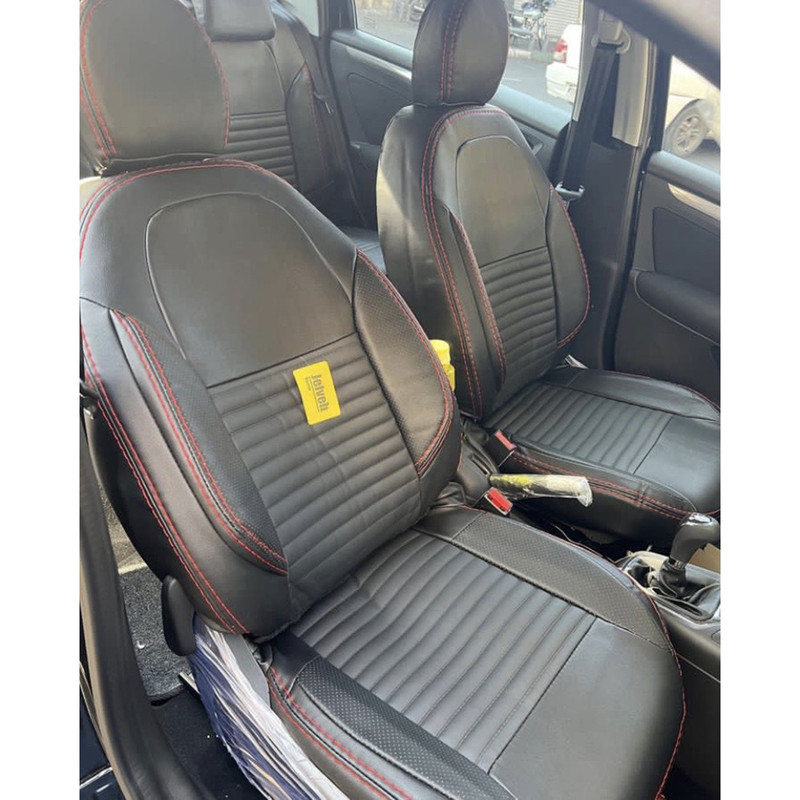 از دلایل استفاده روکش صندلی می توان به حفظ نظافت صندلی فابریک خودرو و تزئین داخلی خودرو به سلیقه مشتریان اشاره کرد استفاده از روکش هایی که متناسب الگوی صندلی نباشد موجب افت ابر های صندلی می گردد. اگر شما نسبت به نظافت و پاکیزگی روکش صندلی های خودرو خود حساس هستید پیشنهاد ما به شما روکش صندلی های چرمی می باشد زیرا مهم ترین مزیت روکش صندلی های چرمی , زیبایی و استحکام ، نظافت و پاکیزگی سریع و راحت آن می باشد این روکش مشکی رنگ میباشد و تنوع رنگی درج شده در ان مربوط به رنگ نخ دوخت ان میباشد