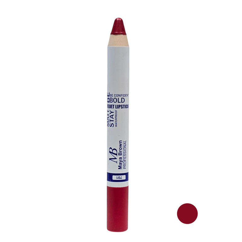 رژ لب مدادی مایا بروان یک رژ بادوام می باشد که ماندگاری آن تا 24 ساعت می باشد که دارای بافت بسیار نرم و لطیف می باشد.بدنه این محصول به رنگ سفید و عبارت Maya Brown به راحتی بر روی آن قابل مشاهده است. قسمت انتهایی این مداد با رنگ مشابه رنگ نوک آن طراحی شده است.مواد استفاده شده در ترکیبات این رژ لب مدادی از مواد گیاهی است به شکلی که به سلامت شما هیچ آسیبی نخواهد زد