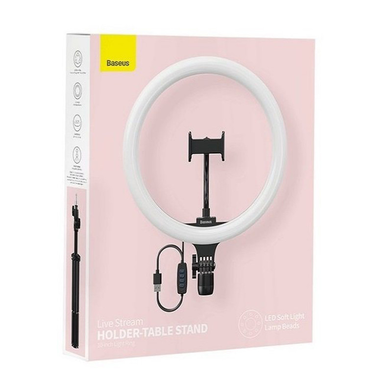 رینگ لایت یک ابزار نورپردازی ساده است که عموما برای گرفتن عکس های زیبایی، پرتره و عکاسی ماکرو استفاده می شود. این ابزار معمولا از چند لامپ کوچک به فرم یک دایره یا فقط یک لامپ فلورسنت مدور تشکیل شده است. زمانی که از این ابزار در عکاسی استفاده می شود، به شکل جذابی نور را در چشمان فرد به دام می اندازد در حالی که نور را بصورت یکنواخت پراکنده کرده و به رفع سایه ها کمک می کند. این ابزار معمولا در جلوی فرد قرار داده می شود و دوربین در وسط این حلقه قرار می گیرد.رینگلایت عمدتا برای عکاسی و فیلمبرداری استفاده می شود. این ابزار عموما برای تهیه پرتره، عکاسی ماکرو و سایر کاربردهایی استفاده می شود که مستلزم کار از نزدیک بر روی یک سوژه هستند (برای مثال، در عکاسی برای مد یا مواد غذایی). همچنین، رینگلایت به عنوان یک ابزار نورپردازی اقتصادی برای فیلمبرداری در فضای داخل ساختمان یا ویدئو بلاگ استفاده می شود. عکاسان و فیلمبرداران علاقه زیادی به رینگلایت ها دارند زیرا آنها نور را در اطراف سوژه مورد نظر پراکنده می کنند و ظهور سایه های زننده را کاهش می دهند.توجه داشته باشید این محصول بدون سهپایه عرضه میشود.برق این رینگلایت توسط کابل USB که داخل بستهبندی قرار دارد تامین میشود و تنظیمات آن نیز با دکمههای قرار گرفته روی آن انجام میشود.