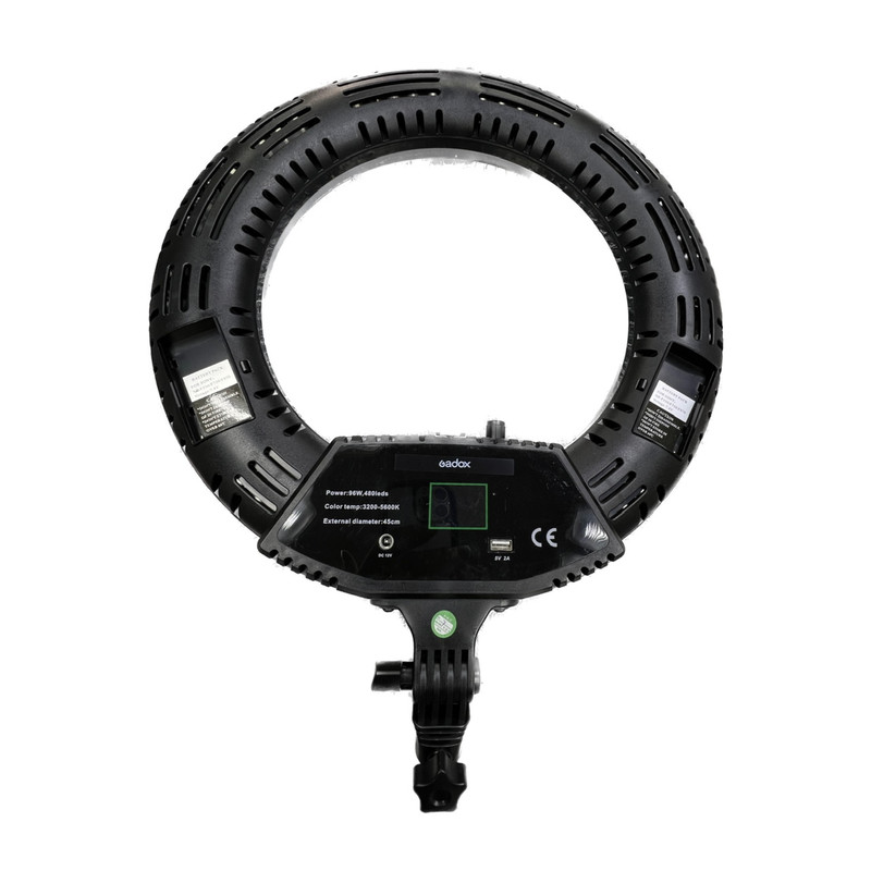همچنین این رینگ دارای دو قسمت برای نسب باتری جهت استفاده در بیرون از خانه و دارای صفحه LCD می باشد کلوین این رینگ لایت از 3200تا5500 با توان 100 می باشد(رینگ لایت بدون باتری می باشد).