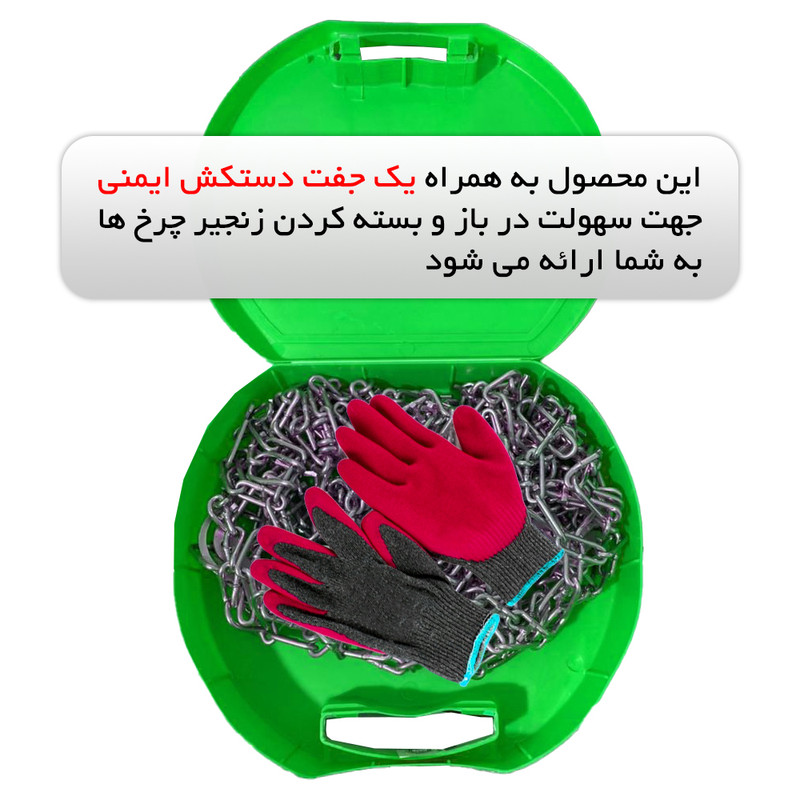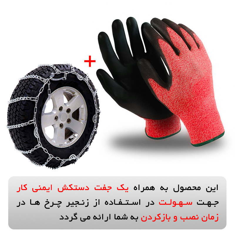 | سایر توضیحات | - جلوگیری از لغزیدن خودرو در برف و سطوح یخزده - سهولت در نصب بدون نیاز به جک در کمتر از یک دقیقه - عدم آسیب رسانی به جلوبندی و سیستم ABS - مقاوم در برابر آب و هوا (سرما و گرما) - ظرفیت تحمل بار (وزن خودرو) |