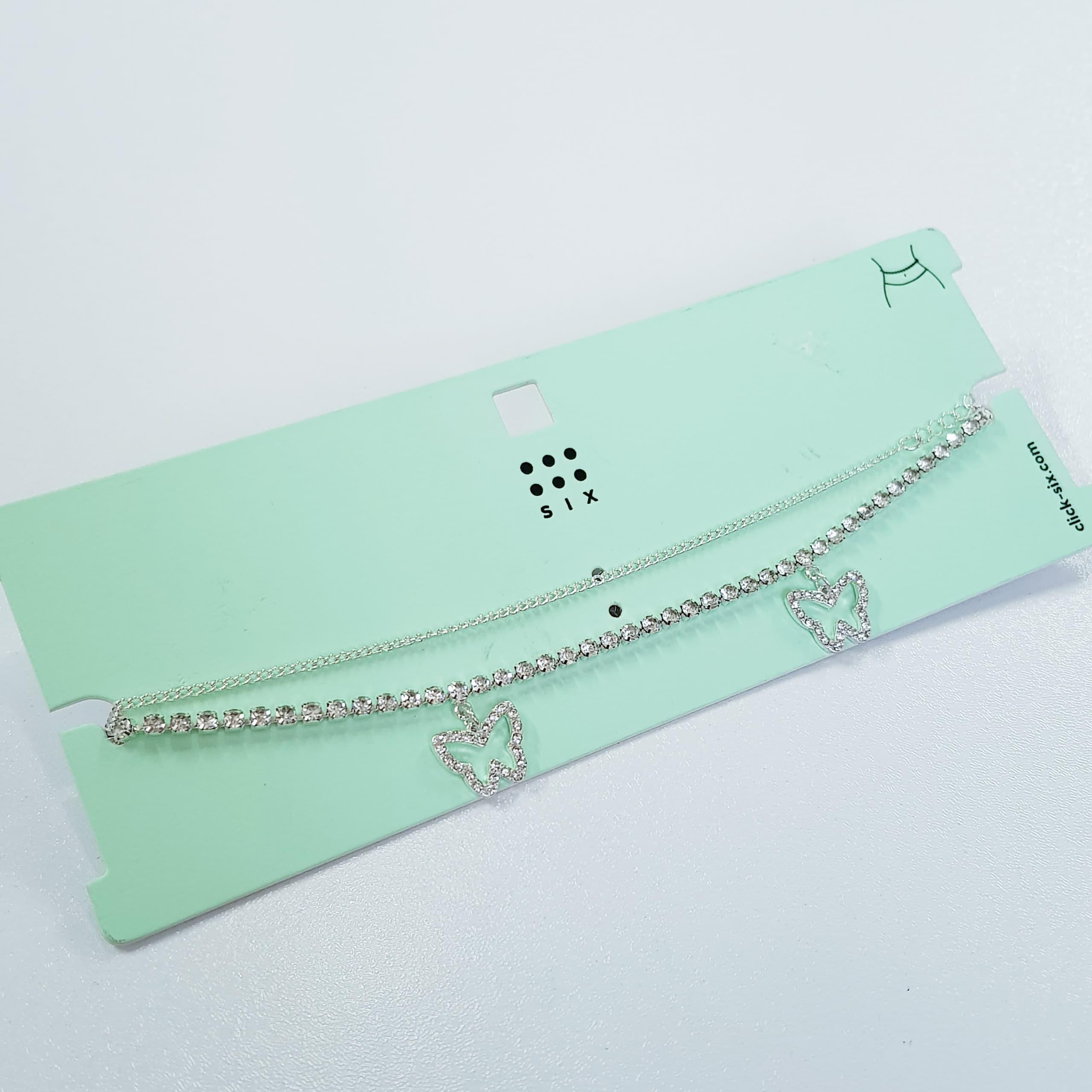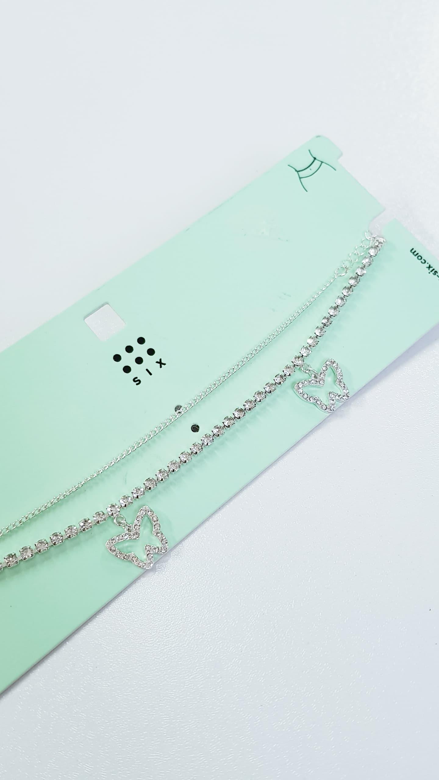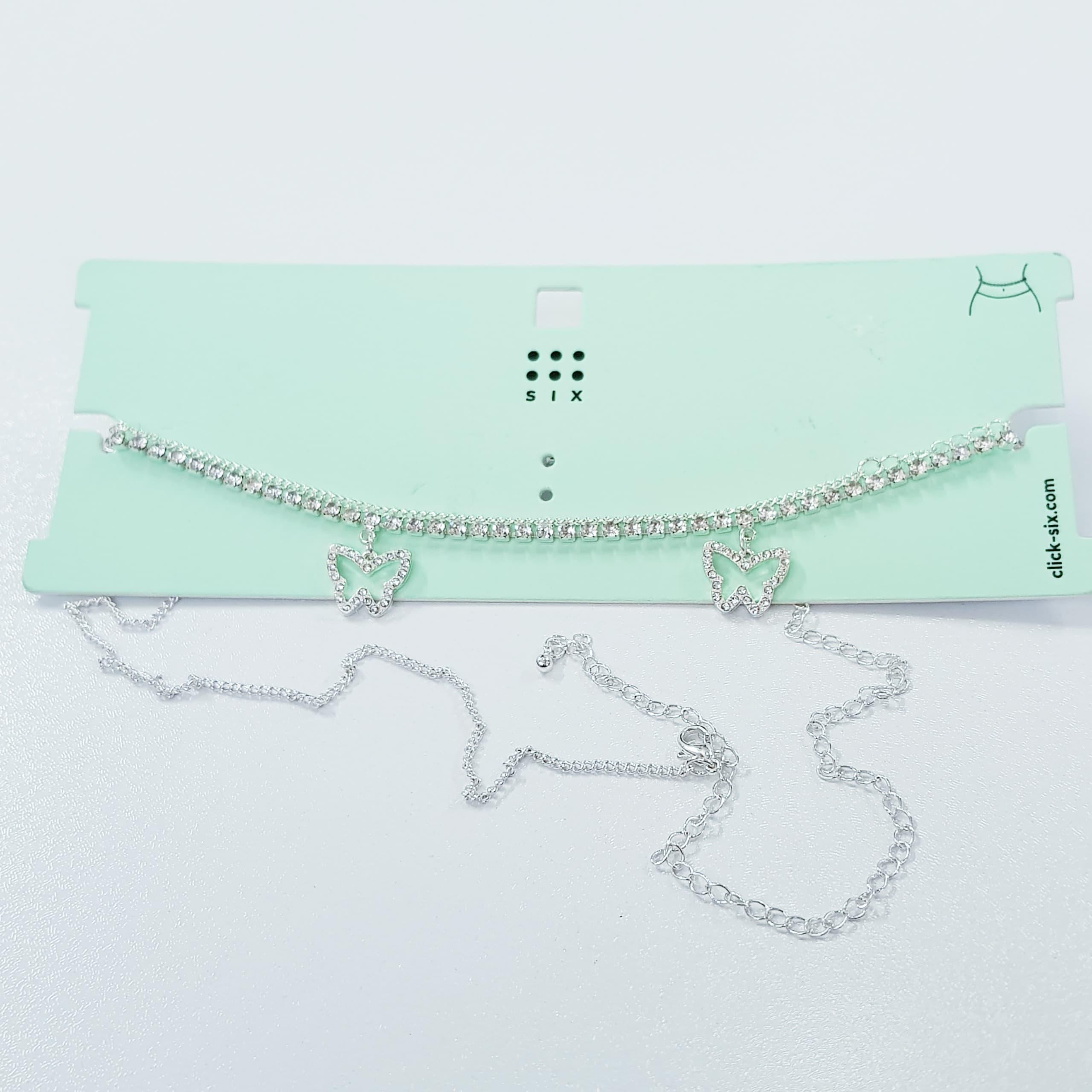 زنجیر کمر نقره ای تنیسی آویز پروانه ، کار حرفه ای بسیار زیبا و درخشان ، فری سایز قابل تنظیم ، نگین ثابت بدون ریزش ضد حساسیت برند Six تحت لیسانس آلمان