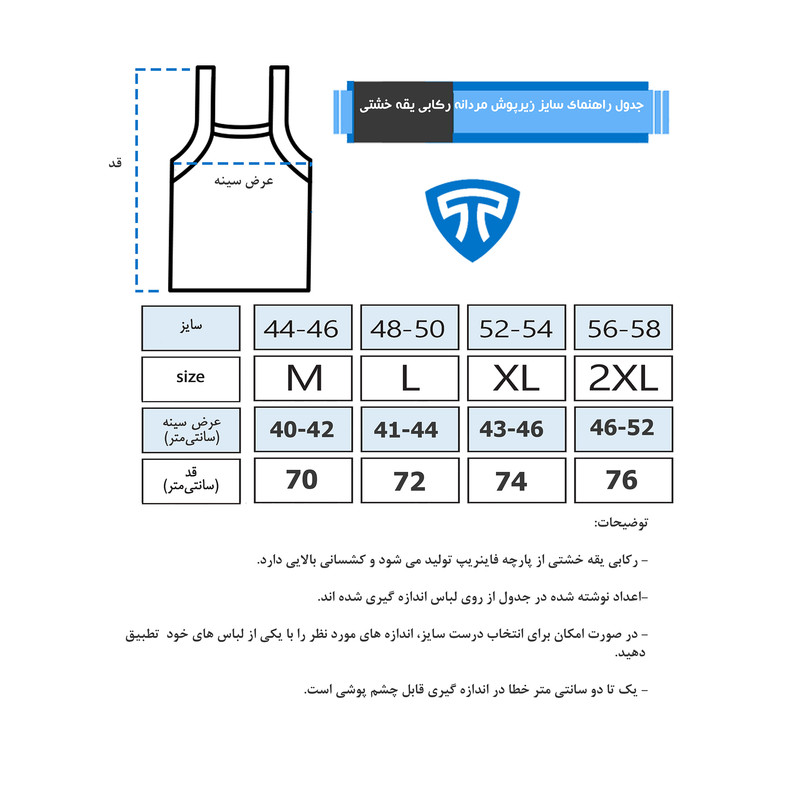 رکابی یقه خشتی که نوعی عرقگیر بدون آستین محسوب میشود. بسیار خنک بوده، وزن سبکی دارد و کمترین حساسیت را برای پوست ایجاد میکند.