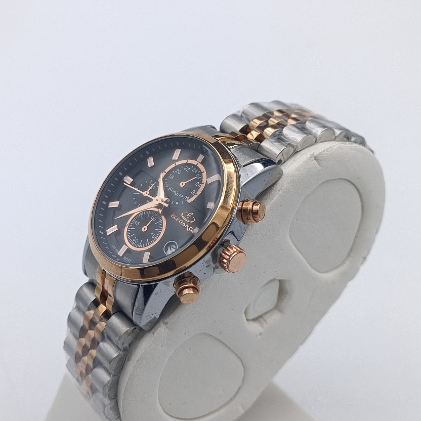 ساعت الگانس دو رنگ رزگلد صفحه مشکی طرح سه موتور 6598 مردانه