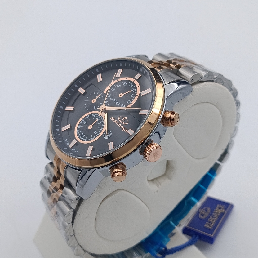 ساعت الگانس دو رنگ رزگلد صفحه مشکی طرح سه موتور 6598 مردانه
