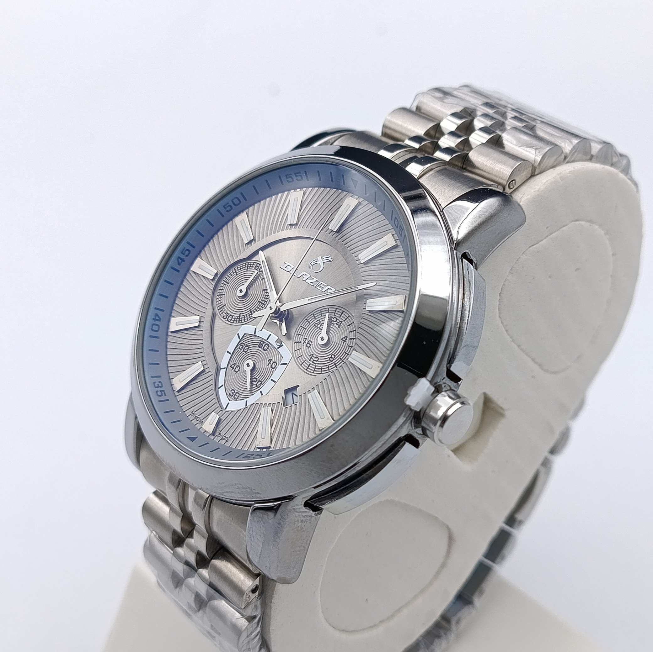کرنوگراف چهار موتوره: فراتر از یک نمایشگر ساده، این قابلیت پیچیده نشان از روح اسپرت و فنی ساعت بلیزر استیل صفحه نقره ای شما دارد.