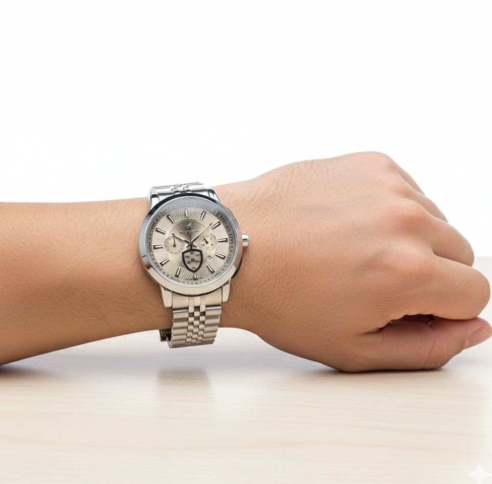 صفحه نقرهای (Silver) این مدل، یک بوم کلاسیک برای نمایش زمان است. این رنگ خنثی و در عین حال شیک، به سادگی با هر استایلی، از رسمی و کاری گرفته تا کژوال و روزمره، هماهنگ میشود. عقربهها و ایندکسهای برجسته با طراحی دقیق، خوانایی بالایی را حتی در یک نگاه کوتاه فراهم میکنند.