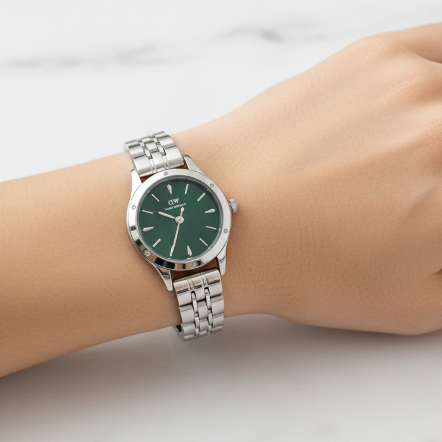 ساعت دنیل ولینگتون زنانه استیل با صفحه سبز: تجسمی از ظرافت و طبیعت