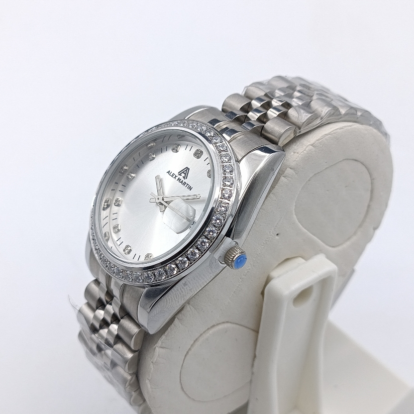 ساعت دور نگین استیل صفحه سفید الکس مارتین زنانه: درخشش ابدی در مچ دستان شما