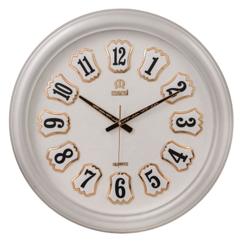 ساعت دیواری مارال مدل 45با صفحه کاغذ دیواری و اعداد برجسته خاص زیبایی منحصر به فردی را به محیط پیرامون شما می بخشد قطر این ساعت 52 سانتی متر و موتور آن روان گرد و فوق العاده بی صدا و کم مصرف میباشد.