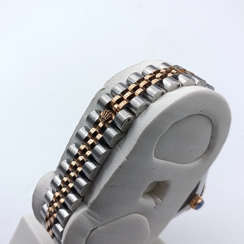 این مدل دیت جاست با قاب ۲۸ میلیمتری خود، به شکلی ایدهآل برای مچ دست بانوان طراحی شده است. ترکیب هوشمندانه استیل ضد زنگ با روکش رزگلد، که در دنیای رولکس به «رولسور» (Rolesor) شهرت دارد، تضادی چشمنواز میان استحکام و لطافت ایجاد میکند. بند «ژوبلی» (Jubilee) با حلقههای ظریف و درخشان خود، نه تنها راحتی بیمانندی را فراهم میآورد، بلکه با انعکاس نور، جلوهای شاهانه به ساعت میبخشد. علاوه بر این، ما ماندگاری رنگ این ترکیب زیبا را تضمین میکنیم تا درخشش آن تا سالها همراه شما باقی بماند.
