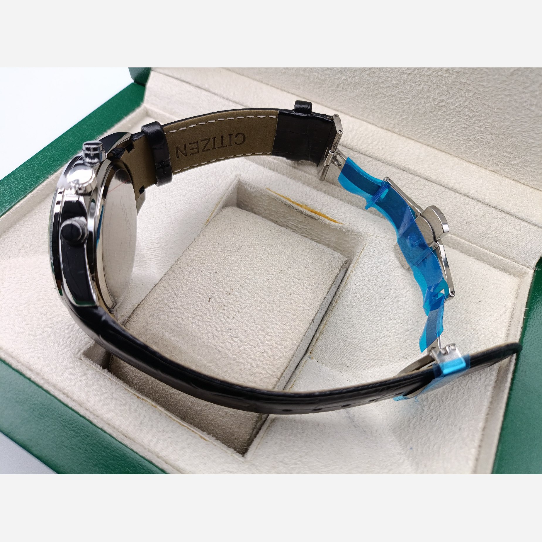 بند چرمی با اصالت: بند چرمی درجه یک با لوگوی حکشده سیتیزن، نه تنها راحتی بینظیری را به ارمغان میآورد، بلکه حس گرما و لوکس بودن چرم طبیعی را به شما منتقل میکند.