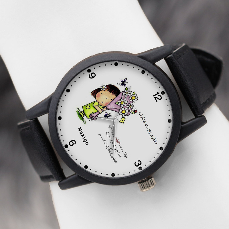 ساعت مچی عقربه ای ناکسیگو طرح روز دختر یک ساعت مچی برای استفاده روزمره به شمار می آید. کیفیت، زیبایی و کارایی از بارزترین مشخصه های این کالا می باشد. ناکسیگو با تولید ساعت های خاص در طرح های متنوع برای همه نوع سلیقه ای سعی در فراهم کردن خواسته اغلب مردم نموده است. موتور این محصول کیفیت مناسبی دارد و کارکردی مطمئن را به ارمغان می آورد. بند این ساعت از چرم مصنوعی تولید شده، که دارای مقاومت بالا و نرمی فوق العاده است و باعث آزار دست نمی شود. عقربه های از جنس روی جلوه ای زیبا به این ساعت بخشیده. بدنه این ساعت از جنس پلاستیک فشرده بوده که باعث سبکی و استفاده راحت آن می شود.