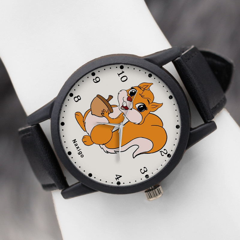 ساعت مچی عقربه ای ناکسیگو طرح سنجاب یک ساعت مچی برای استفاده روزمره به شمار می آید. کیفیت، زیبایی و کارایی از بارزترین مشخصه های این کالا می باشد. ناکسیگو با تولید ساعت های خاص در طرح های متنوع برای همه نوع سلیقه ای سعی در فراهم کردن خواسته اغلب مردم نموده است. موتور این محصول کیفیت مناسبی دارد و کارکردی مطمئن را به ارمغان می آورد. بند این ساعت از چرم مصنوعی تولید شده، که دارای مقاومت بالا و نرمی فوق العاده است و باعث آزار دست نمی شود. عقربه های از جنس روی جلوه ای زیبا به این ساعت بخشیده. بدنه این ساعت از جنس پلاستیک فشرده بوده که باعث سبکی و استفاده راحت آن می شود.