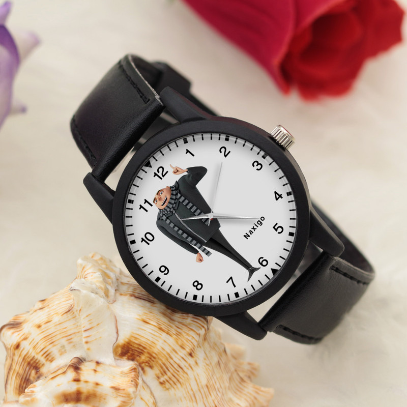 ساعت مچی عقربه ای ناکسیگو طرح من نفرت انگیز1 یک ساعت مچی برای استفاده روزمره به شمار می آید. کیفیت، زیبایی و کارایی از بارزترین مشخصه های این کالا می باشد. ناکسیگو با تولید ساعت های خاص در طرح های متنوع برای همه نوع سلیقه ای سعی در فراهم کردن خواسته اغلب مردم نموده است. موتور این محصول کیفیت مناسبی دارد و کارکردی مطمئن را به ارمغان می آورد. بند این ساعت از چرم مصنوعی تولید شده، که دارای مقاومت بالا و نرمی فوق العاده است و باعث آزار دست نمی شود. عقربه های از جنس روی جلوه ای زیبا به این ساعت بخشیده. بدنه این ساعت از جنس پلاستیک فشرده بوده که باعث سبکی و استفاده راحت آن می شود.
