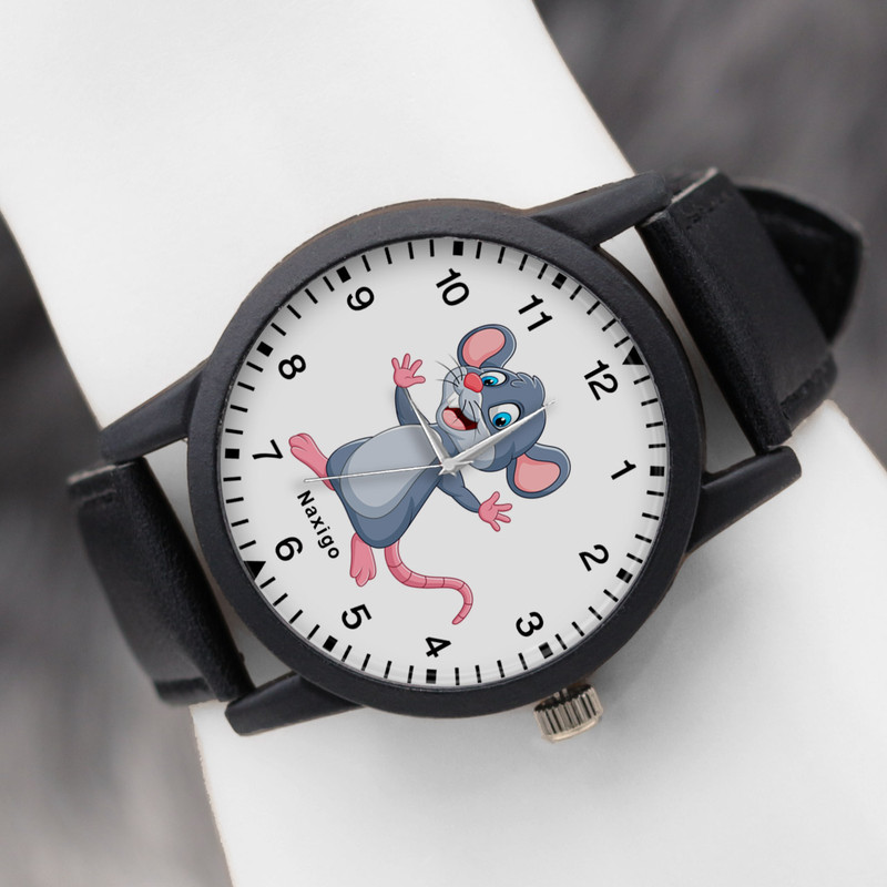 ساعت مچی عقربه ای ناکسیگو طرح موش یک ساعت مچی برای استفاده روزمره به شمار می ‎آید. کیفیت، زیبایی و کارایی از بارزترین مشخصه‌ های این کالا‌ می ‌باشد. ناکسیگو با تولید ساعت ‌های خاص در طرح های متنوع برای همه نوع سلیقه ‌ای سعی در فراهم کردن خواسته اغلب مردم نموده است. موتور این محصول کیفیت مناسبی دارد و کارکردی مطمئن را به ارمغان می‌ آورد. بند این ساعت از چرم مصنوعی تولید شده، که دارای مقاومت بالا و نرمی فوق العاده است و باعث آزار دست نمی‌ شود. عقربه ‌های از جنس روی جلوه‌ ای زیبا به این ساعت بخشیده. بدنه این ساعت از جنس پلاستیک فشرده بوده که باعث سبکی و استفاده راحت آن می شود.