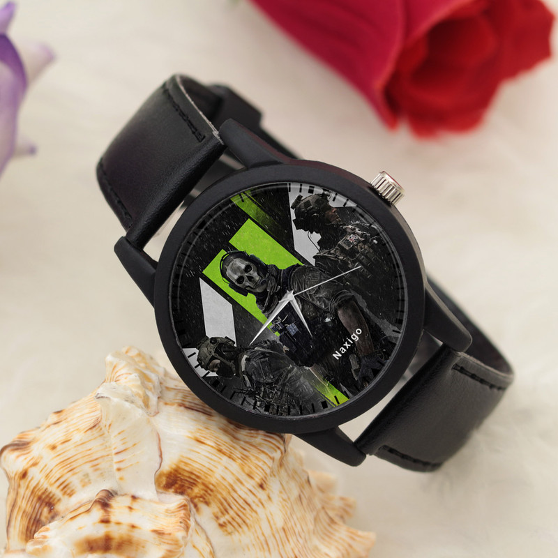 ساعت مچی عقربه ای ناکسیگو طرح Call of Duty یک ساعت مچی برای استفاده روزمره به شمار می آید. کیفیت، زیبایی و کارایی از بارزترین مشخصه های این کالا می باشد. ناکسیگو با تولید ساعت های خاص در طرح های متنوع برای همه نوع سلیقه ای سعی در فراهم کردن خواسته اغلب مردم نموده است. موتور این محصول کیفیت مناسبی دارد و کارکردی مطمئن را به ارمغان می آورد. بند این ساعت از چرم مصنوعی تولید شده، که دارای مقاومت بالا و نرمی فوق العاده است و باعث آزار دست نمی شود. عقربه های از جنس روی جلوه ای زیبا به این ساعت بخشیده. بدنه این ساعت از جنس پلاستیک فشرده بوده که باعث سبکی و استفاده راحت آن می شود.
