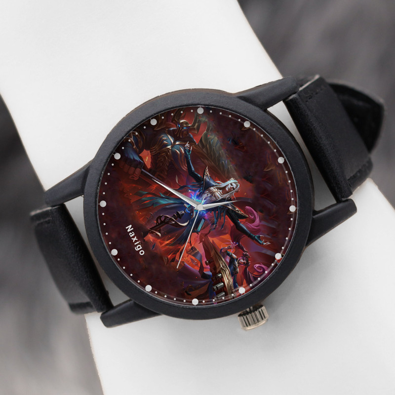 ساعت مچی عقربه ای ناکسیگو طرح League of Legends یک ساعت مچی برای استفاده روزمره به شمار می ‎آید. کیفیت، زیبایی و کارایی از بارزترین مشخصه‌ های این کالا‌ می ‌باشد. ناکسیگو با تولید ساعت ‌های خاص در طرح های متنوع برای همه نوع سلیقه ‌ای سعی در فراهم کردن خواسته اغلب مردم نموده است. موتور این محصول کیفیت مناسبی دارد و کارکردی مطمئن را به ارمغان می‌ آورد. بند این ساعت از چرم مصنوعی تولید شده، که دارای مقاومت بالا و نرمی فوق العاده است و باعث آزار دست نمی‌ شود. عقربه ‌های از جنس روی جلوه‌ ای زیبا به این ساعت بخشیده. بدنه این ساعت از جنس پلاستیک فشرده بوده که باعث سبکی و استفاده راحت آن می شود.