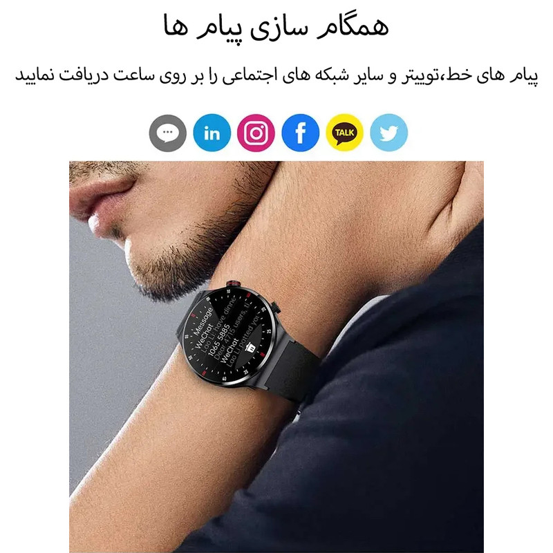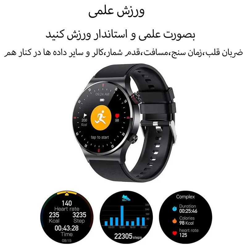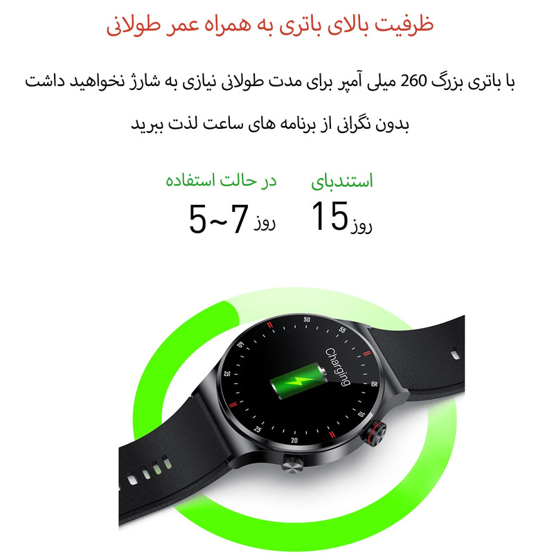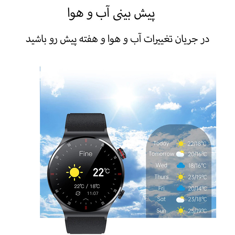 | قابلیتهای ساعت هوشمند | صفحه نمایش رنگی , صفحه نمایش لمسی , کنترل موسیقی (Music Player) , قابلیت مکالمه از طریق بلوتوث |