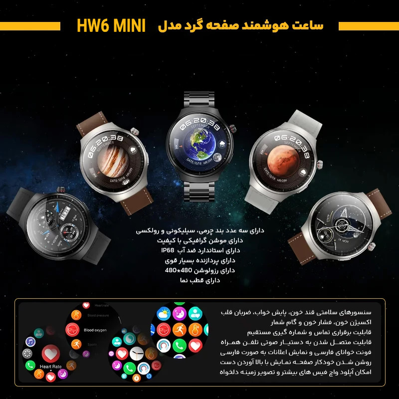 ساعت HW6 MINI یک دستگاه هوشمند بسیار کارآمد و جذاب است، این ساعت هوشمند با داشتن ویژگیها و امکانات برتر، به کاربران امکانات متنوعی را ارائه میدهد. طراحی زیبا و مدرن، با صفحه نمایش AMOLED با کیفیت و وضوح تصویر بسیار بالا که امکان مشاهده راحت و واضح اطلاعات را برای کاربران فراهم میکند. این ساعت هوشمند دارای دو دکمه فیزیکی در کنار صفحه نمایش است که به کاربران امکان کنترل آسان را فراهم میکند. یکی از ویژگیهای برجسته HW6 MINI، سنسورهای پیشرفتهای که در آن استفاده شده است. این سنسورها شامل سنسور ضربان قلب، سنسور پایش خواب و سلامتی ، سنسور شتابسنج است که به کاربران امکان اندازهگیری دقیق فعالیتهای ورزشی، کنترل ضربان قلب و نظارت بر کیفیت خواب را میدهد. همچنین، HW6 MINI دارای ویژگیهای هوشمندی مانند اعلانهای هوشمند، ردیابی فعالیتهای ورزشی، مانیتورینگ استرس و مدیریت موزیک است. این ساعت هوشمند همچنین دارای استاندارد ip68 است که آن را ضدآب و ضد گرد و غبار کرده است و آن را برای استفاده در شرایط مختلف مناسب میسازد. با توجه به ویژگیهای منحصر به فرد و کارایی بالای آن، HW6 MINI یک گزینه عالی برای افرادی است که به دنبال یک ساعت هوشمند با کیفیت و کارامد هستند.