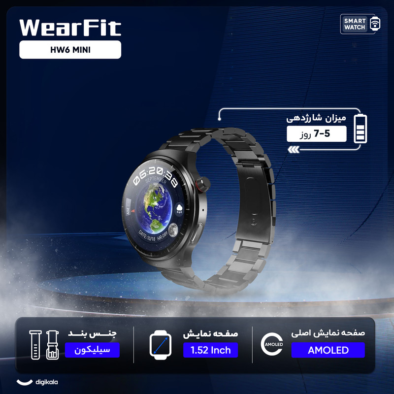 | قابلیتهای ساعت هوشمند | صفحه نمایش رنگی , صفحه نمایش لمسی , کنترل موسیقی (Music Player) , کنترل سطح اکسیژن خون , قابلیت مکالمه مستقیم , قابلیت مکالمه از طریق بلوتوث |
