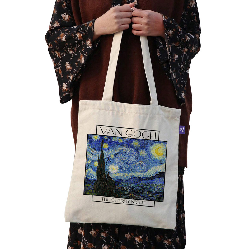 ساک خرید ترمه طراحان ایده مدل شب ستاره ای از ونگوگ کد art010 - s
