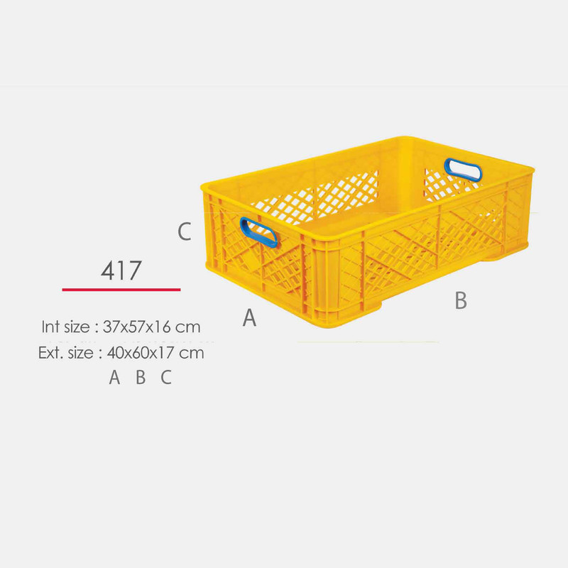 جعبه و یا سبد مخصوص لبنیات برند الوند پلاستیک کد 417 از بهترین مواد اولیه پلیمری تولید شده است و برای جابجایی نگهداری محصولات لبنی بسیار مناسب می باشد. جهت سهولت در جابجایی این سبد دسته جابجایی تعبیه شده است.