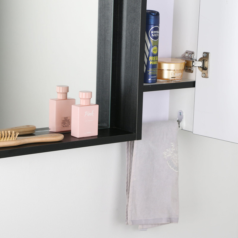 آینه و باکس دلفین کد 1047. این محصول ساخته شده از جنس پی ویسی و ضدآب است. طبقات بیرونی مناسب برای قرار دادن لوازم از جمله ادکلن،لوازم دکوری و آرایشی است. کابینت کنار آینه سایز و فضای مناسب برای استفاده را مهیا نموده است این محصول باید توسط پیچ و رولپلاک به دیوار نصب شود که متعلقات نصب همراه کالا ارسال می شود. آینهی بهکاررفته از نوع درجه یک سوپر کریستال بوده که پشت آینه نقره اندود شده است. تراش یک سانتیمتری دور آینه باعث زیبایی و استحکام بیشتر لبه هاست. لولای کابین از نوع آرام بند بوده و استحکام طبقات برای قرار دادن وزن های متعارف قابلقبول است.