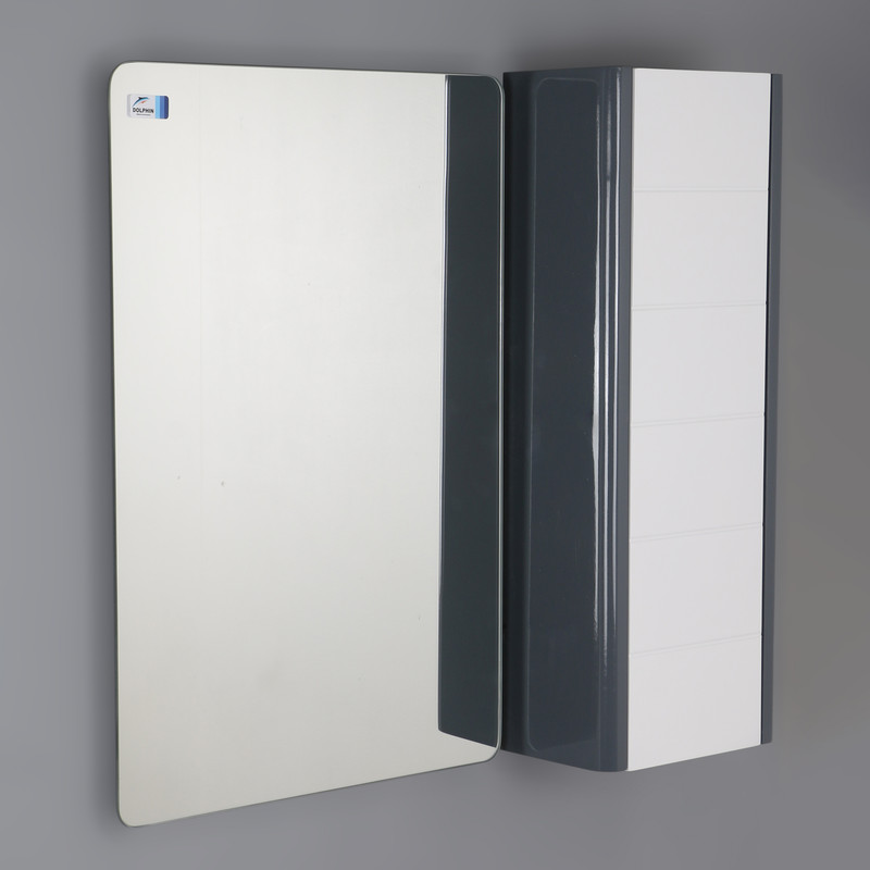 آینه و باکس دلفین کد 1069. این محصول ساخته شده از جنس پی ویسی و ضدآب است. این محصول باید توسط پیچ و رولپلاک به دیوار نصب شود که متعلقات نصب همراه کالا ارسال می شود. آینهی بهکاررفته از نوع درجه یک سوپر کریستال بوده که پشت آینه نقره اندود شده است. لولای کابین از نوع آرام بند بوده و استحکام طبقات برای قرار دادن وزن های متعارف قابلقبول است.