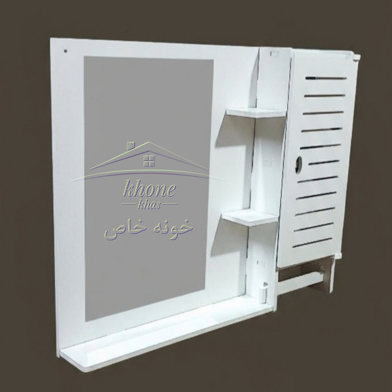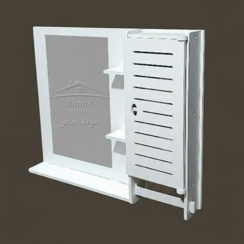 ست کامل آینه و باکس خونه خاص که در تصویر مشاهده می کنید در مدل خطی با باکس بهم چسبیده با طرح بسیار زیبا تولید و به بازار عرضه گردیده است. بدنه ی PVC این محصول دارای خاصیت ضد آب و استحکام بسیار بالایی می باشد و از این رو شما می توانید بدون نگرانی از کاهش کیفیت محصول از آن در محیط های مرطوب، سرویس بهداشتی، حمام همچنین در آرایشگاه ها نیز استفاده نمائید. این محصول در ابعاد بزرگ و بسیار کاربردی طراحی و تولید شده است بطوریکه ابعاد آینه و باکس مناسب است (کوچک و فانتزی نیست) باکس درب دار محصول دارای دو طبقه است و مناسب قرار دادن لوازم آرایشی و بهداشتی می باشد. در قسمت پایینی باکس جای دستمال رولی یا حوله تعبیه شده است که نیاز شما را کاملا مرتفع می کند. این محصول بصورت تک جعبه در کارتن خونه خاص تولید و ارسال می شود.