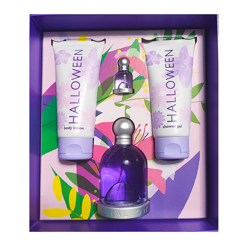 ست 4 عددی هالووین بنفش شامل یک عدد ادوتویلت هالووین زنانه با حجم 100 میلی لیتر , یک عدد ادوتویلت مینیاتوری هالووین با حجم 4.5 میلی لیتر , یک عدد لوسیون بدن هالووین با حجم 100 میلی لیتر و در نهایت یک عدد شاور ژل با حجم 100 میلی لیتر میباشد.