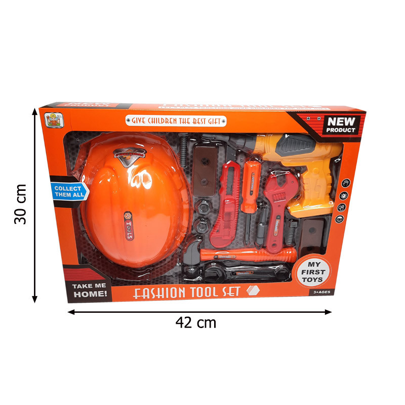 | اقلام همراه | - 15 قطعه : دریل ، 2 پیچ و 2 مهره ، کاتر ، چکش ، آچار ، آچار فرانسه ، کلاه ، 2 عدد تخته پلاستیکی سوراخ دار ، پیچ گوشتی ، مته ، سری پیچ گوشتی برای دریل |