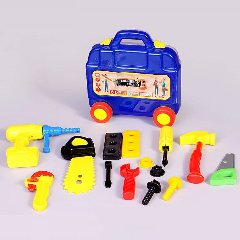 | اقلام همراه | 24 عدد اسباب بازی شامل کیف چمدانی ماشینی، دریل، چکش، آچار تخت، انبر، پیچگوشتی، اره، آچاز قفلی، پیچ و مهره و ابزار اتصال و ابزار سوراخکاری |