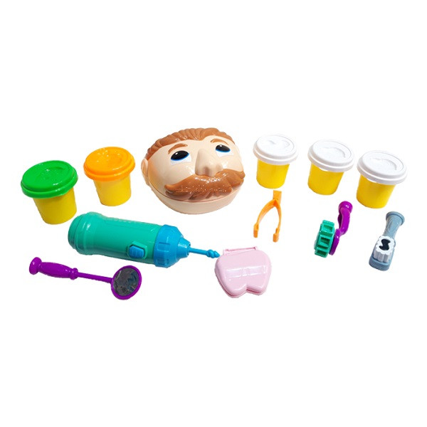 اسباب بازی ست تجهیزات دندان پزشکی یک اسباب بازی خمیری آموزشی برای کودکان است ، این ست شامل ماکت فک و دندان ، ابزار دندانپزشکی جهت پر کردن دندان ، کشیدن دندان ، مسواک کردت ، قالب گیری دندان و سیم کشی دندان است. این بازی برای کودکان بالای 3 سال مناسب می باشد.