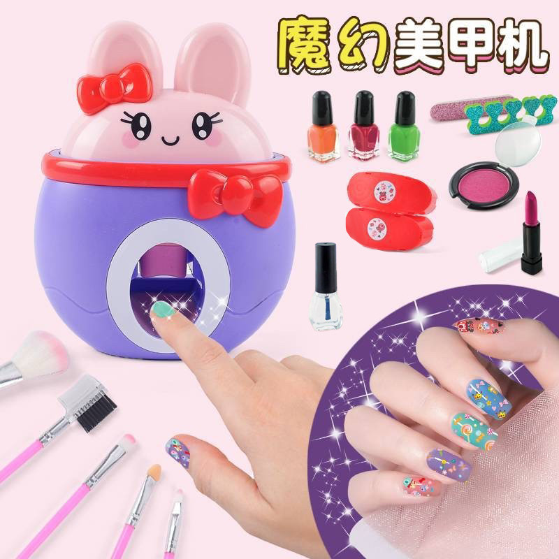 اسن ست اسباب بازی لوازم آرایشی شامل یک استمپر ناخن بوده که دارای 2 طرح مختلف است که به راحتی روی لاک چاپ میشود، فقط کافیست انگشتان لاک زدهی خود را یکی یکی داخل دستگاه بگذارید و دکمهی بالایی را فشار دهید. برای استفاده از این دستگاه لازم است که حتماً از لاک مخصوص موجود در بسته استفاده کنید .یکی از سه رنگ لاک را انتخاب کنید، بعد از اینکه آن را خوب تکان دادید یک لایه نازک از آن روی ناخنهای خود بگذارید. بعد از گذشت 5 دقیقه و خشک شدن لاک ها میتونید از دستگاه استفاده کنید، به این صورت که یکی از طرح ها را داخل دستگاه قرار دهید و اهرم بالایی را محکم به مدت 2 ثانیه روی هر ناخن فشار دهید. حالا میتوانید محافظ لاک رو روی طرح های ناخنتون بکشید تا دوام بیشتری داشته باشند.در این ست بازی علاوه بر استمپر و کرم پاک کننده تعدادی لوازم آرایش با کیفیت نیز قرار دارد تا این مجموعه یک انتخاب عالی و سورپرایز کننده برای هدیه به دختران بالای 6 سال باشد.