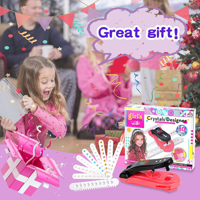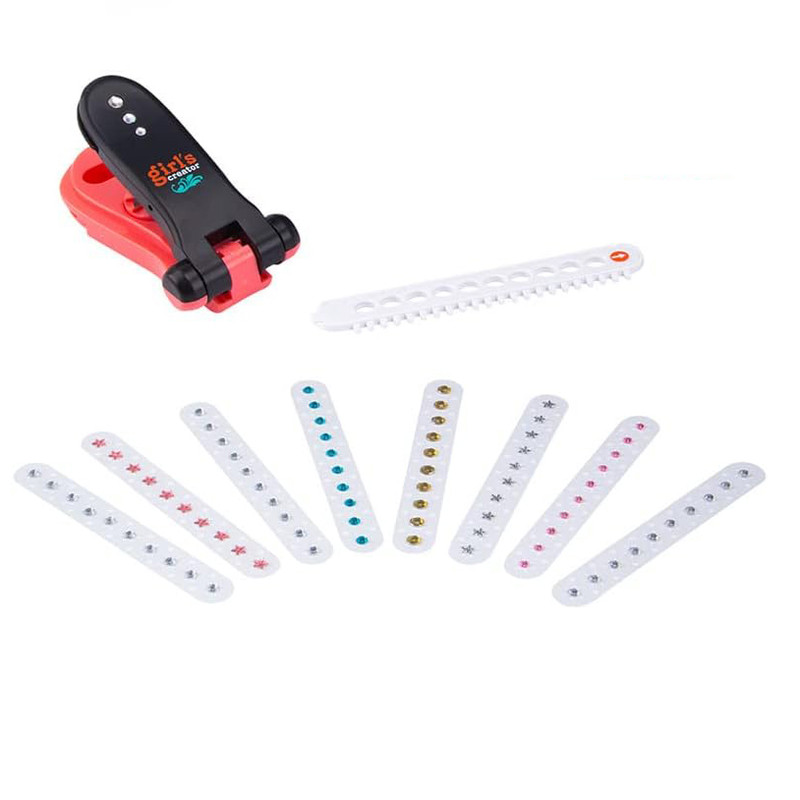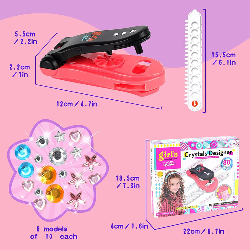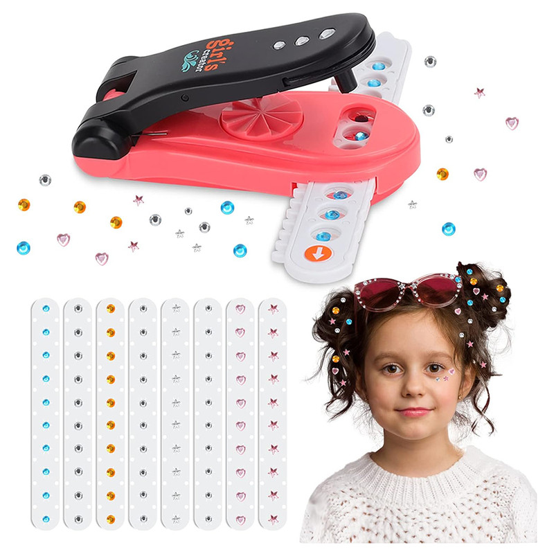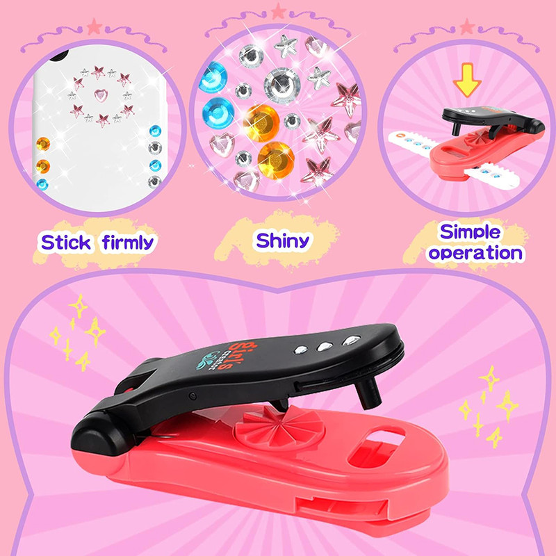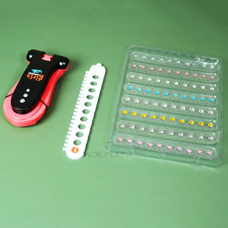 این یک ست آرایشی دخترانه با نگین های درخشان است که به موهای شما و تمام لوازم جانبی مورد علاقه شما (مثل کیف، کفش و غیره) درخشش می بخشد. این یک اسباب بازی تعاملی والدین و کودک می باشد که می تواند توانایی های عملی دختران را افزایش دهد، خواسته های طراحی آنها را برآورده کند و استعدادهای طراحی آنها را تحریک کند. بگذارید بچه ها در یک قرار دوستانه یا مهمانی خانوادگی بدرخشند.یک هدیه ویژه یک اکسسوری مو مناسب دختران 5-12 سال است. این الماس های رنگی می توانند برای دختر خانم ها در مناسبت های مختلف استفاده کنند. این دستگاه نگین زن را برای دخترانتان بخرید و اجازه دهید دختران لذت ببرند. شیک و زیبا برای ایجاد مدل موهای شیک فردی برای مناسبت های مختلف مانند دم اسبی، قیطان، نان و غیره و همچنین برای تزئین کیف، کفش، عینک، ناخن و ….این دستگاه نگین زن یک دستگاه ایمن و با کاربری آسان بوده و با داشتن آن فقط یک قدم با شکفتن خلاقیت های فاصله دارید. ورق های نگینی از پلاستیک ساخته شده و ایمن هستند لطفا با اطمینان از آن استفاده کنید.