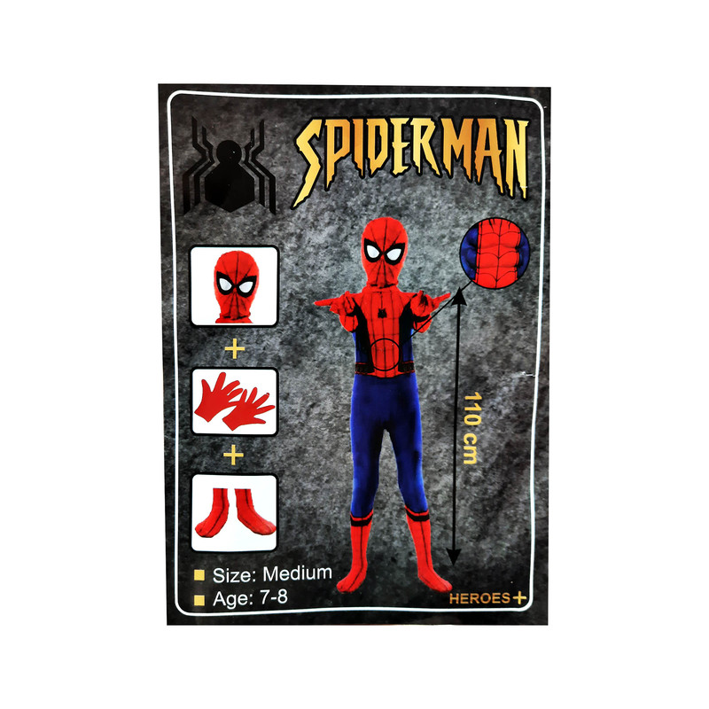 این ست، مجموعه لباس مرد عنکبوتی (اسپایدرمن) مناسب کودکان است. در این ست ایفای نقش یک لباس سرهمی اسپایدرمن، یک ماسک پارچه ای به صورت کلاه، یک جفت دستکش و یک جفت جوراب وجود دارد.