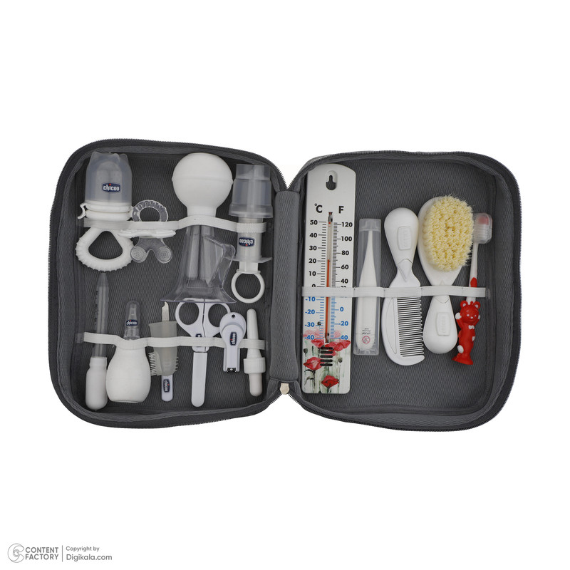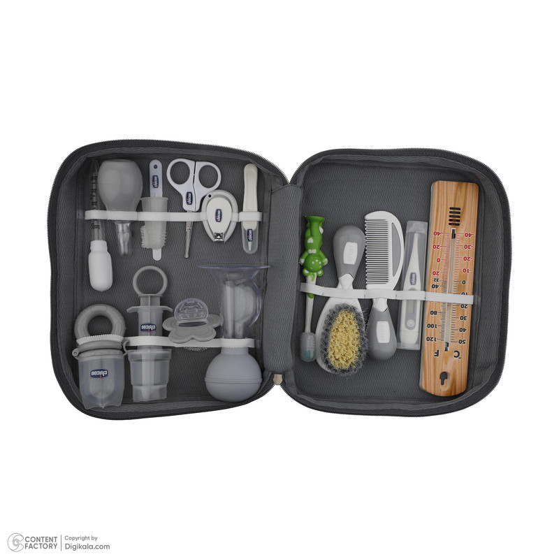 | سایر توضیحات | - دارای برس به ابعاد 6×3×15 سانتیمتر و وزن 50 گرم - دارای شانه به ابعاد 16×4×3 سانتیمتر و وزن 25 گرم - دارای تب سنج - دارای دماسنج به درجه بندی منفی 40 تا پنجاه درجه سانتیگراد و درجه بندی منفی 40 تا 120 درجه فارنهایت - دارای مسواک به ابعاد 14×3×2 سانتیمتر و وزن 15 گرم - دارای چای خوری به ابعاد 13×3×2 سانتیمتر و حجم 5 میلی لیتر - دارای پوار بینی به ابعاد 10×5×5 سانتیمتر و وزن 30 گرم - دارای مسواک انگشتی سیلیکونی برای رفع خارش لثه به طول 5 سانتیمتر - دارای سوهان به ابعاد 11×1×1 سانتیمتر - دارای قیچی به ابعاد 10×5×1 سانتیمتر - دارای ناخن گیر به ابعاد 6×2×4 سانتیمتر - دارای موچین پلاستیکی به ابعاد 9×2×2 سانتیمتر - دارای دارو خوری به ابعاد 13×5×3 سانتیمتر - دارای شیردوش به سری سیلیکونی به ابعاد 14×7×5 سانتیمتر - دارای دنداگیر دو طرفه سیلیکونی - دارای میوه خوری به ابعاد 10×5×5 سانتیمتر - دارای کیف با زیپ سرتاسری - دارای جعبه |