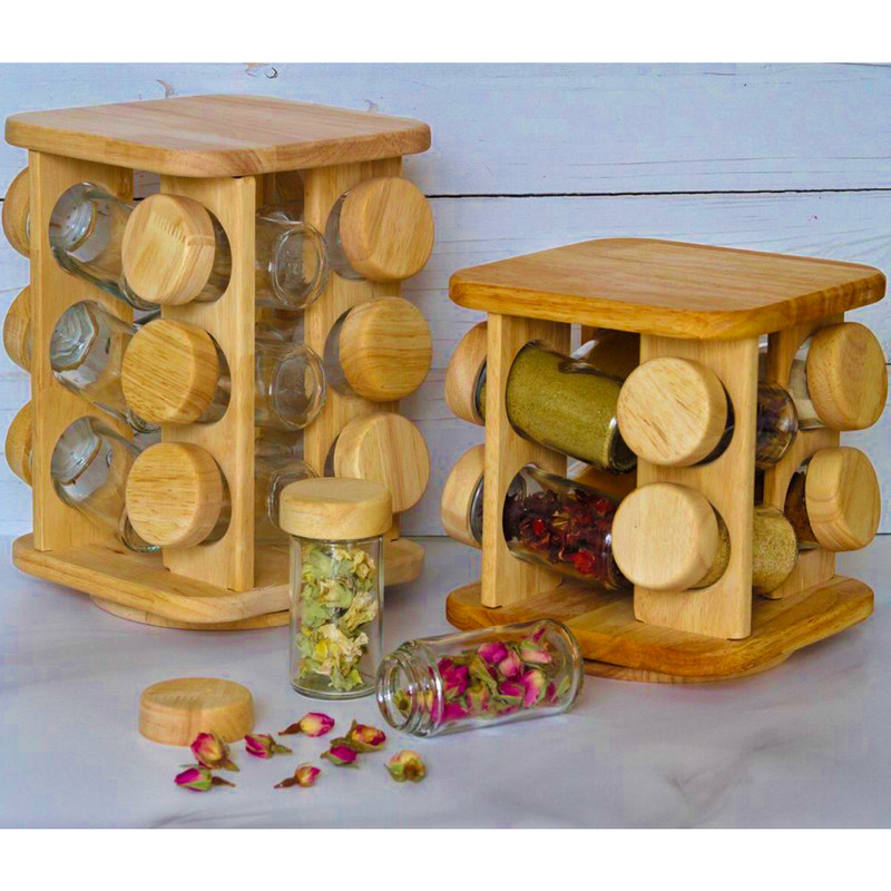 | سایر توضیحات | ساخته شده از چوب رابر دارای نقش و خلل و فرج طبیعی شامل 12 جا ادویه شیشه ای با درب چوبی هر یک به قطر 4 و ارتفاع 10 سانتیمر با خروجی ثابت قابلیت چرخش 360 درجه استند نگهدارنده به هر دو طرف شیک و ساده دارای جعبه ساخت کشور ایران |